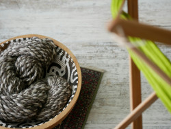 Garnskålen är tillverkad av indisk rosenträ, vilket ger den ett hållbart och naturligt utseende. Träets struktur och nyanser gör varje skål unik, och materialet är tillräckligt tungt för att stå stadigt på bordet under användning.